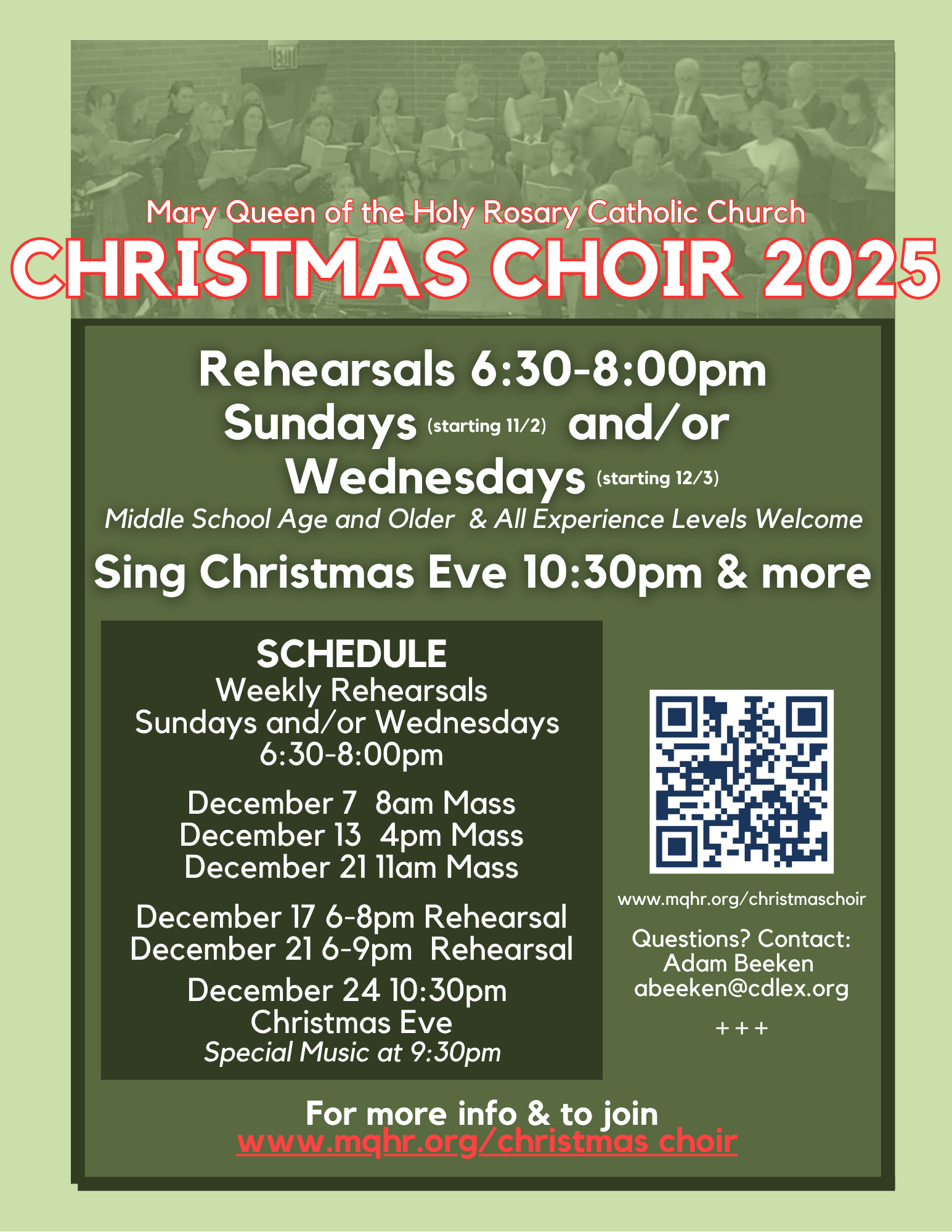 Choristers: The Parish Choir is scheduled to sing at the 11am Mass this Sunday for Christ the King, although any additional singers are welcome to join in. The same applies for the choir at this...
